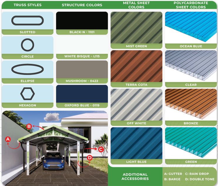 | Carports Size | 4333 * 6060mm | 4333 * 6060mm | 4333 x 7060 mm |